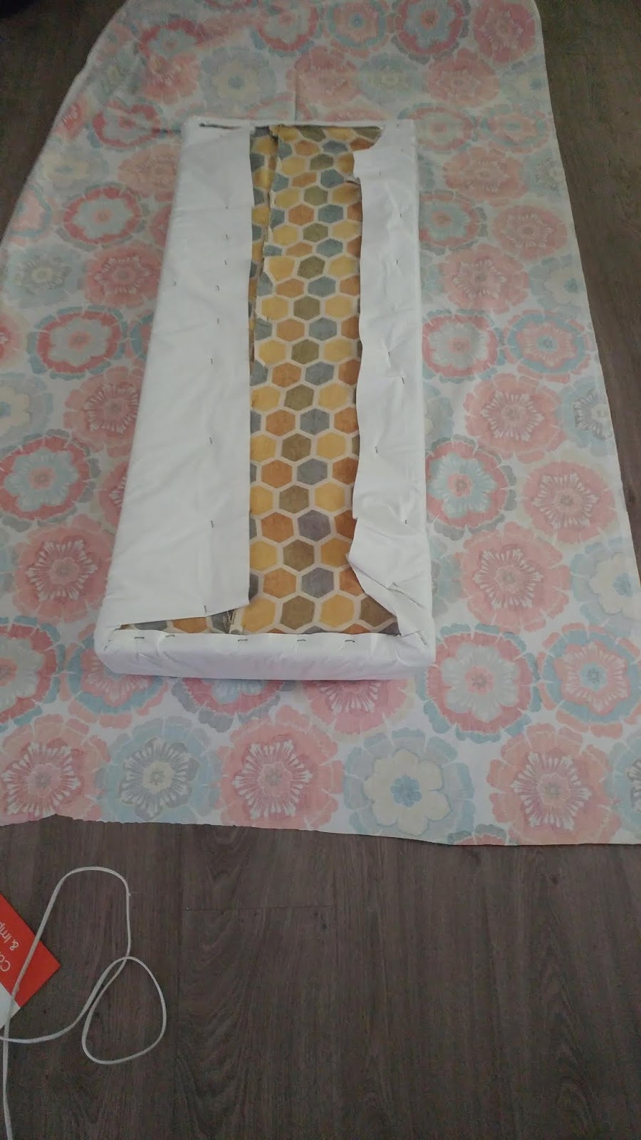 Not wanting to make permanent changes I decided to go the glue gun route. Using the glue gun will allow the owners to remove the fabric if it gets nasty or if they hate it without too much hassle. Also it is quick and I am such an instant gratification person this satisfies the need to be done FAST!