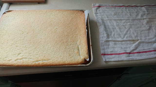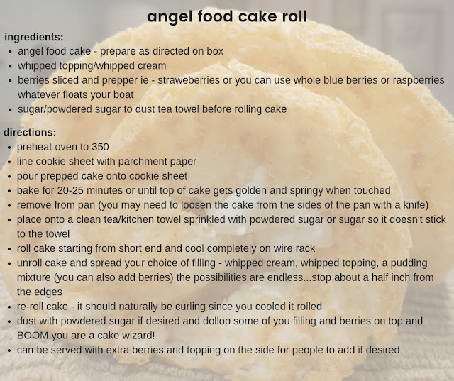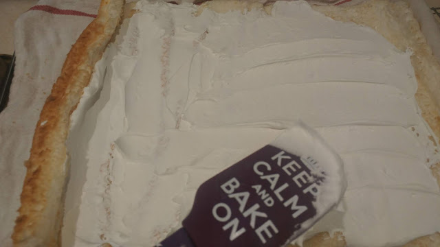 Gently unroll cake and spread filling to about 1/2 inch from the edges of cake - you can also add the berries into the cake too if you want to be fancy!