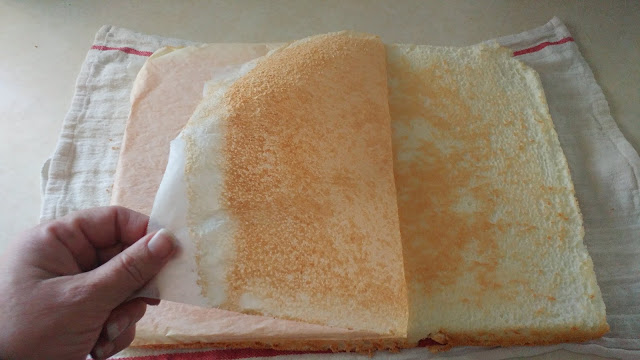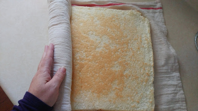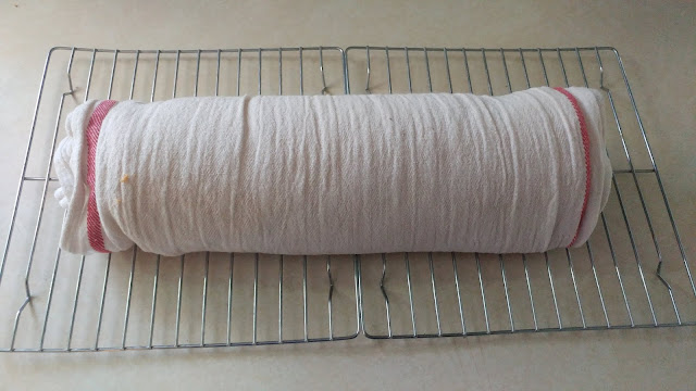 Here is the toughest part...getting in out of the pan and rolled into a clean dish/tea towel.