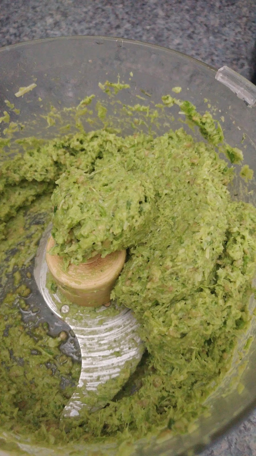 Chop up the scapes so they fit into your food processor (you could probably use a good blender as well and it might even come out smoother - but I went chunky in the cuisine art).