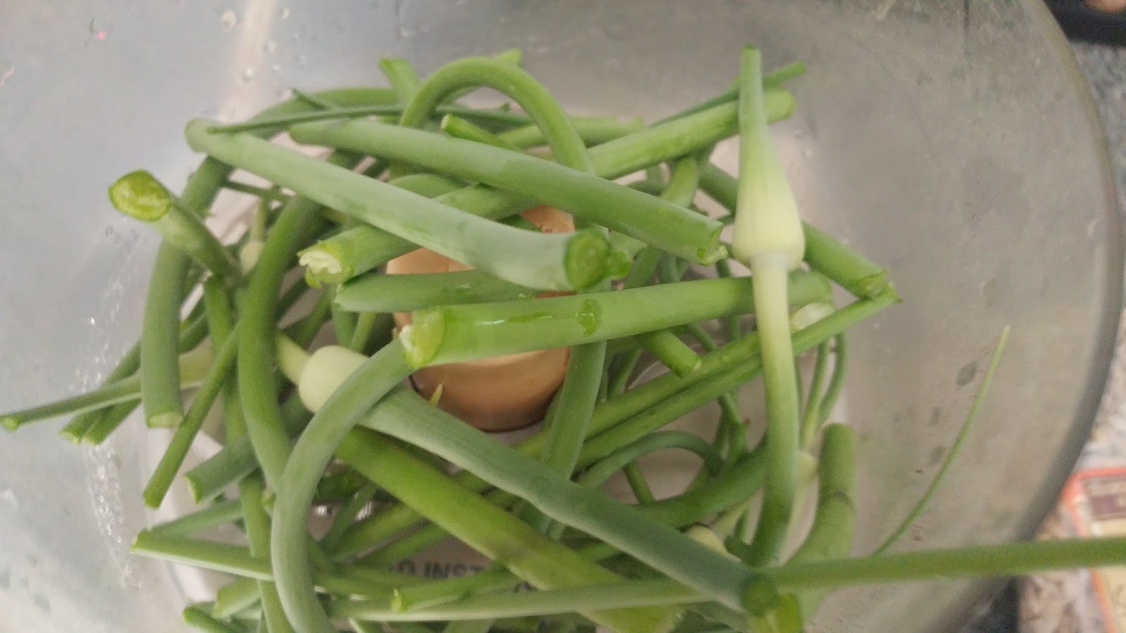 Okay maybe not a million, but way more than I can use to make hummus, no matter how much you love hummus when you are only using two per batch...so what to do with the other 900,000 scapes?